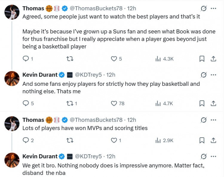 网友:确实,有些人只想看最优秀的球员比赛,仅此而已。 也许是因为我从小就是太阳的粉丝,我见证了布克为这支球队所做的一切,所以我特别欣赏那些不仅仅局限于篮球运动员身份的球员。
