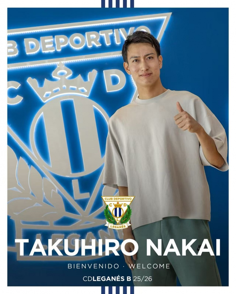 8月22日讯 西乙莱加内斯通过官推宣布,21岁日本中场中井卓大正式加盟莱加内斯B队,他将代表球队征战2025/26赛季西班牙第五级别联赛。